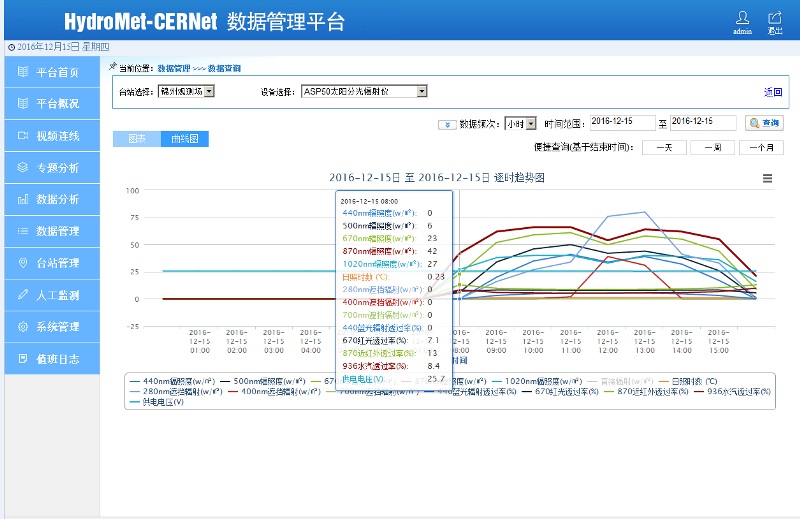 HydroMet-CERNet定位研究網絡數據平臺是華創專為滿足陸地生態系統的氣候生態環境定位觀測研究站網而設計的基于B/S、J2EE、SQL Sserver等系統架構和技術的、具有高效性、集約性、兼容性的數據綜合管理研究平臺。HydroMet-CERNet定位研究網絡數據平臺兼容各類農田、森林、草地、湖泊和海洋生態系統的定位研究站,并按照CERN統一的監測規范標準,對生態系統的狀況和水分、土壤、大氣及生物因子進行規定項目的長期監測記錄和分析管理。這種長期的動態監測,可以產生大量系統的、可比的、規范的數據,為研究以各類生態系統可持續發展為目標的高產、高效的優化模式提供理論依據,從而達到科學管理各類生態系統的目的。
