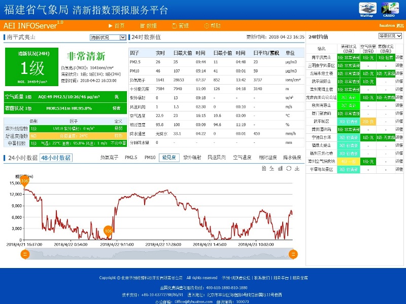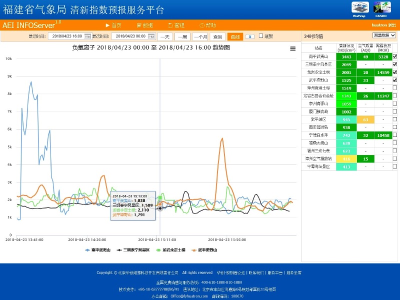 INFOServer-AEI生態康養指數監測分析平臺是應用于生態康養指數觀測數據社會化發布服務的專業發布平臺。可實現多領域、多類型、多生態、多要素監測的生態康養指數儀器的組網、實時空氣指數計算與氣象服務發布功能。基于B/S、J2EE、SQL Sserver等系統架構和技術的,具有高效性、集約性、兼容性的設備數據綜合管理研究平臺。平臺操作簡捷、界面友好, 可對多數據源進行數據收集存儲,支持環境要素的簡單查詢分析,也可進行復雜的專題科研分析。同時根據業務需要定制了分析產品模塊嵌入:清新指數監測分析產品、AQI指數監測分析產品、霧霾狀況監測分析產品、相關環境指數監測分析產品等。具有多種數據應用發布模塊接口。