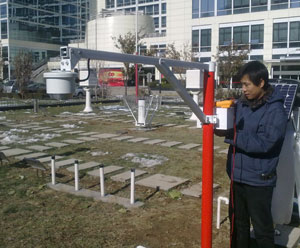 技術(shù)人員正在安裝 HSC-SR80A 雪深監(jiān)測儀 |