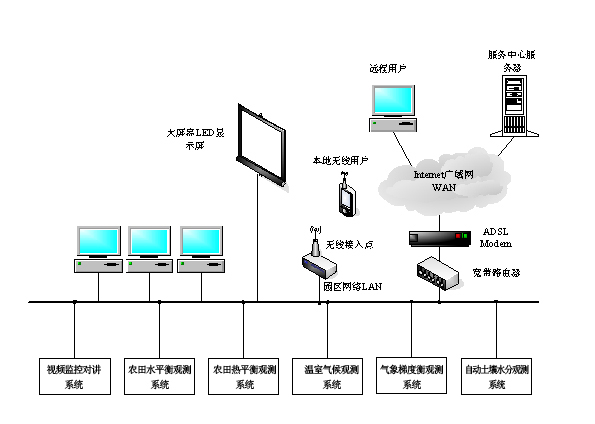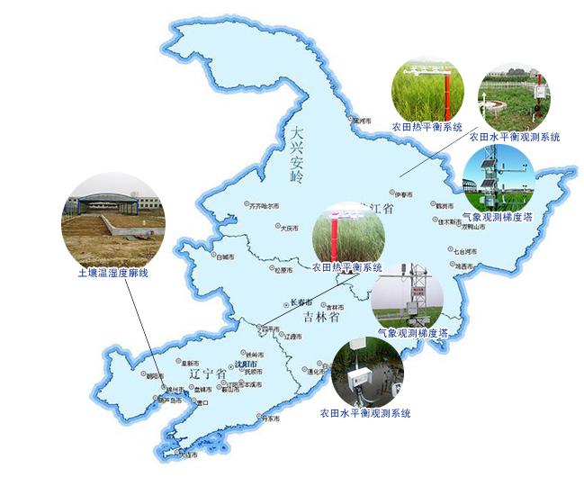 采集監測系統包括農田水平衡觀測系統、農田熱平衡系統及小氣候觀測系統、30米高氣象梯度觀測系統、自動土壤水分及地溫系統、溫室小氣候觀測系統、積雪深度監測系統等組成,涵蓋了農業生態監測的三大主要方向:土壤、水分、氣候。