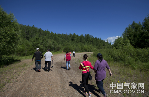 要想到達這里,必須穿過一條悠長、狹窄的彎曲山路,路的寬度剛剛夠一輛大巴通過,稍有不慎便有跌落的可能。在時速不超過10公里的大巴上,每個人的心都是揪著的,因為很多樹枝不甘寂寞地“沖”上路面,干擾車輛前行。 在一路顛簸中,在提心吊膽中,大巴終于還是被攔截了,路面出現小面積塌方。“綠鏡頭-發現中國”采訪團隊成員不得不步行前往森林生態站。“路不好走,又很偏僻,方圓幾十里內幾乎沒有人煙。”呼倫貝爾市氣象局副局長劉喜元對這里并不陌生,“我們每隔20天都會就派人來這里取一次觀測數據,來的次數多了也就習慣了這里的路。”