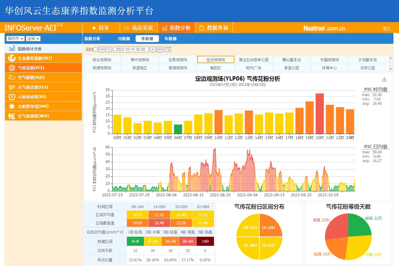 4月中旬,榆林市氣象局覆蓋全市12個縣(市、區)及中心城區4個公園(廣場)建設多通道激光散射粒徑譜分布測量的16套花粉濃度監測站,建成全國首家城市花粉濃度自動監測網,填補了國內花粉濃度自動監測的空白。